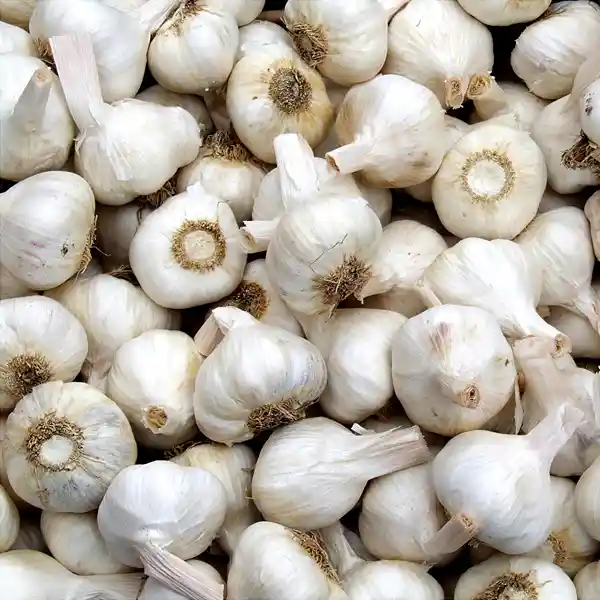 Garlic (Allium sativum) is a pungent, bulbous vegetable known for its strong aroma and bold, savory flavor. The garlic bulb is made up of multiple cloves, each encased in a thin, papery skin and housed within a common outer wrapper. When raw, garlic has a sharp, spicy bite; when cooked, it mellows and develops a rich, nutty sweetness. Used globally in culinary traditions, garlic is an essential ingredient in countless dishes—from sauces and soups to marinades, stir-fries, and roasted vegetables. Its distinctive taste and powerful health benefits have made it a staple in both traditional cooking and natural medicine.